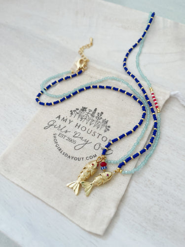 Off The Coast of Italy fish pendant beaded glass and gemstone necklace