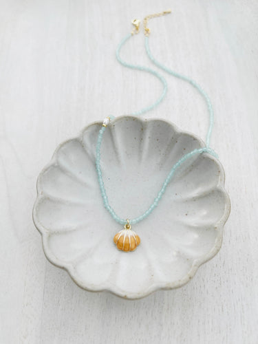Shelby // seashell pendant & aquamarine gemstone necklace