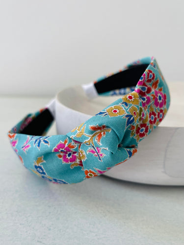 Flower shop teal floral top knot headband