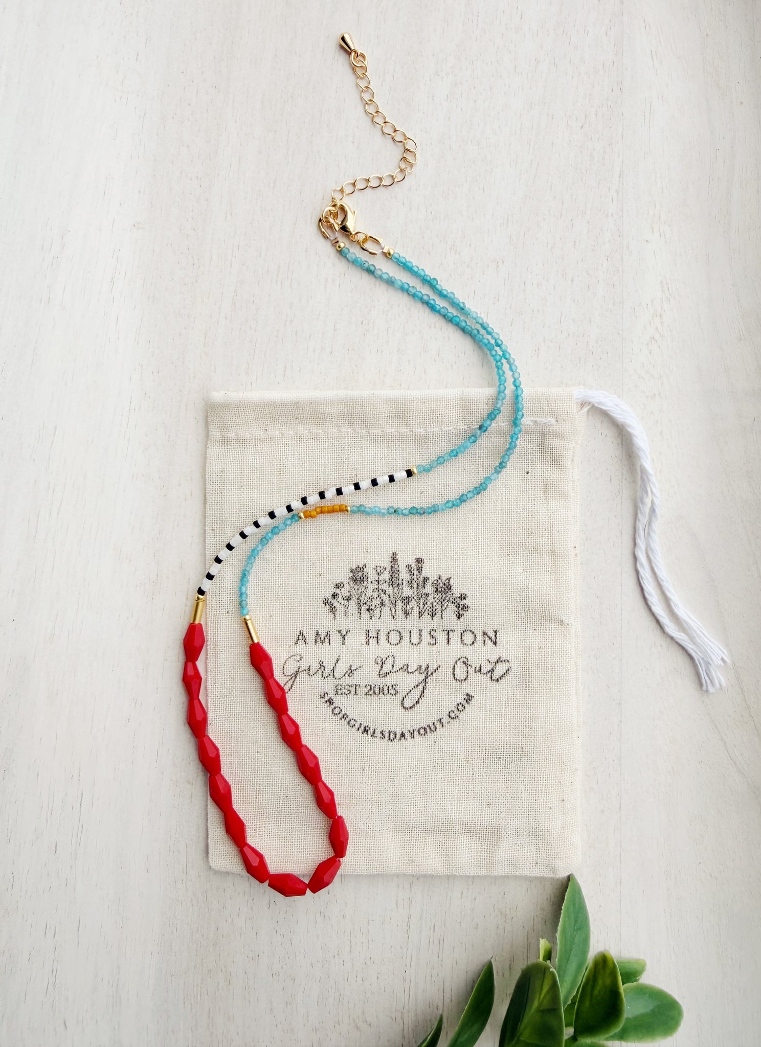 The Bon Voyage Necklace is a vibrant design inspired by adventure. Rich red glass bicone beads pair beautifully with sleek gold tube accents, while Miyuki beads and faceted blue topaz gemstones add an elevated touch of sparkle. The perfect piece to carry a pop of color and wanderlust wherever you go.