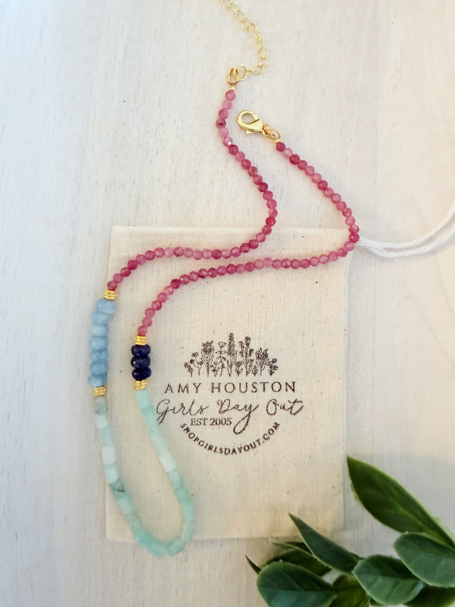 Soft yet striking, the Day Dream Necklace blends dark pink tourmaline, amazonite, lapis, and sky blue for a look that’s effortlessly feminine and graceful. A delicate balance of color and charm — perfect for adding a dreamy touch to any outfit.